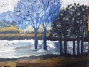 Nature Calm oil on canvas 46x36cm (2.3.25) Hommage a Mama Renée. Having completed the Seasonal Series for the upcoming exhibition in Spring 2025, my “muse” has led me to the influence of abstract with a smattering of the impressionist qualities which I so admire. Having exhibited five of my paintings in June 2024 in the North Chingford Arts Trail on the theme of “A New Light, lovingly curated by Love North Chingford, at “The View” in the Epping Forest Visitors Centre, East London. Whist chatting to the curator of the exhibition, I asked about exhibiting at their gallery – a lovely airy gallery upstairs in the centre, with a view! The themes they accept are – nature, forest, landscapes. Spot on serendipity!