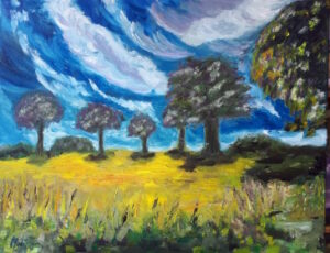 Stormy Summer Day (50x40cm)oil on canvas (27.3.25) after Renée Chatlani. Mohini continues to be inspired by her prolific late mother’s oil paintings, many which hang in her home, others – many, sold, and only photos remain. For her upcoming exhibition at The View, Epping Forest Visitors’ Centre, this Spring (2025) she has created an large body of oil paintings for this exhibition, representing the themes of – Nature, Landscape and the Forest.